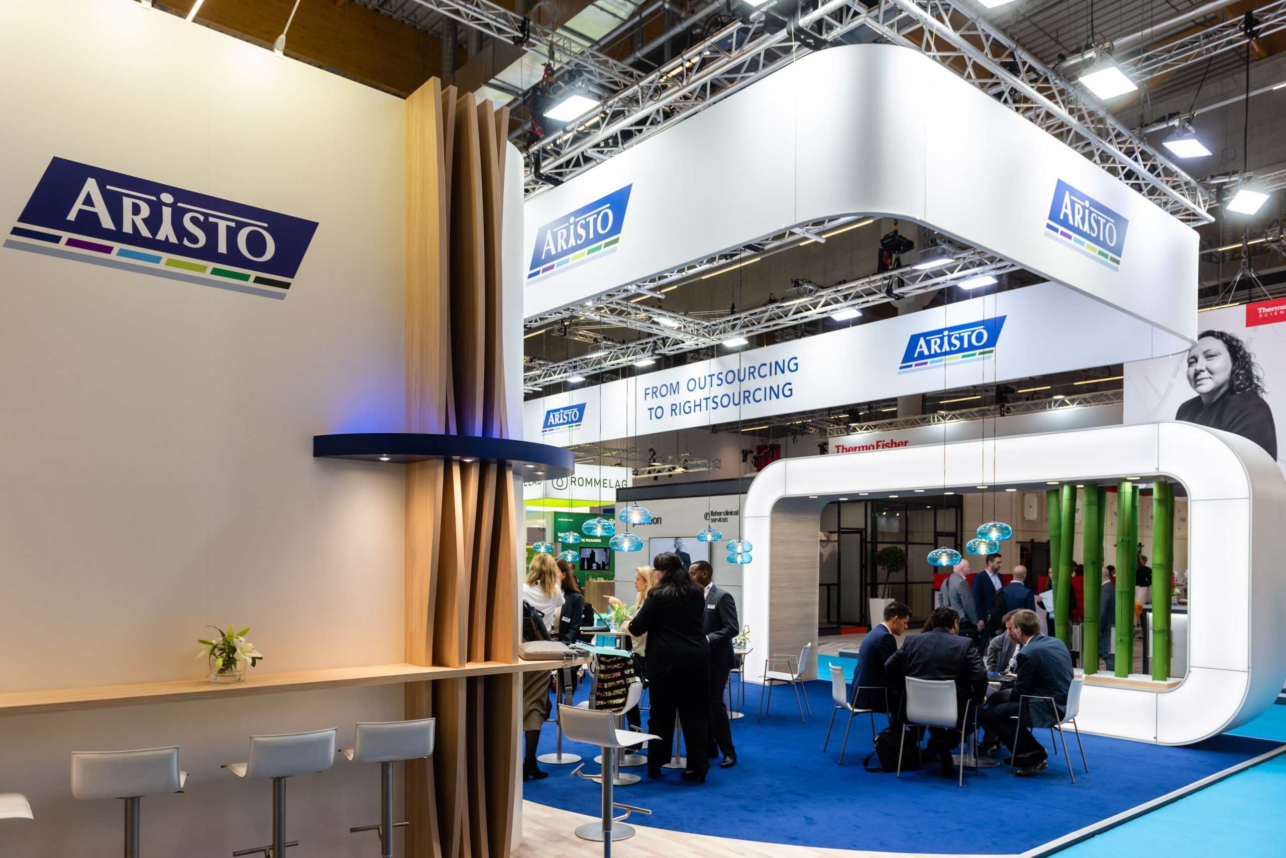 Experience solidity, non-intrusive round shapes, and serenity at the Aristo Pharma booth. Our goal is to provide an experience reminiscent of, or even surpassing, your own office environment. With soundproof conference rooms, glass doors, and diverse environments, a visit to our stand promises a truly unique experience.